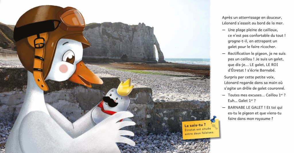Barnabé le galet est le roi d’Étretat ! Mais le jour où il rencontre Léonard, un jar malheureux en amour, il se rend compte qu’il ne connaît pas si bien son royaume… Pourtant plein de surprises !