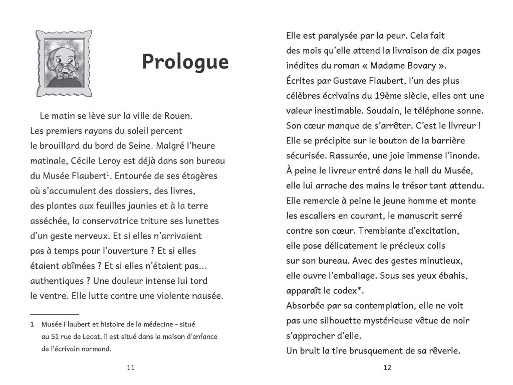 En Normandie, à Rouen, la conservatrice du Musée Flaubert attend avec impatience des pages manuscrites inédites du célèbre écrivain. A quelques rues de là, nos apprentis détectives Momo, Chloé, Ronan et Zemzem se rendent au Festival du livre jeunesse.