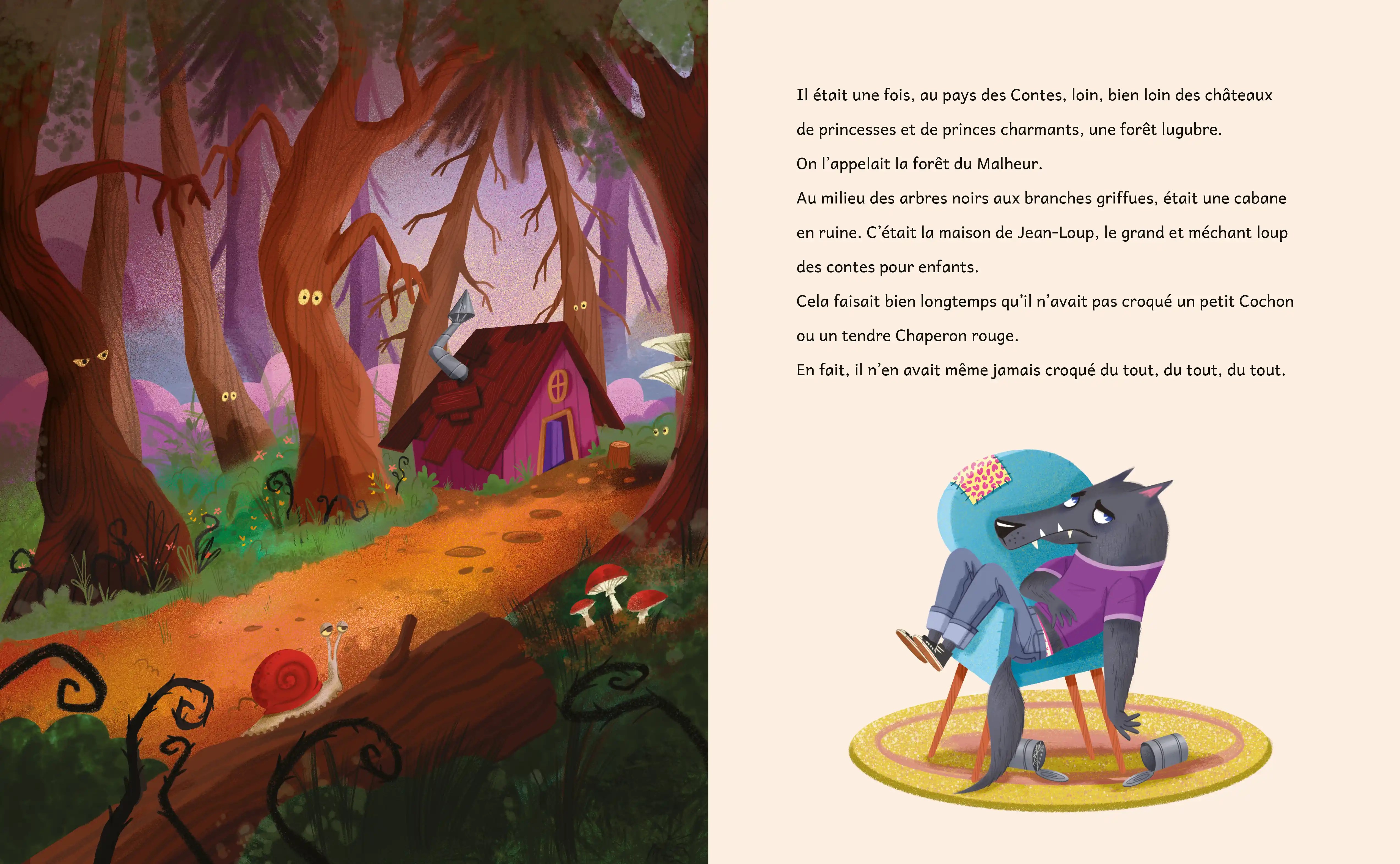 Il était une fois un grand et méchant loup qui s’appelait Jean-Loup et qui avait une faim de… loup ! Impossible de se mettre les 3 petits Cochon ou le Petit Chaperon rouge sous la dent ! Grrrrr… Notre Jean-Loup enrage. Soudain une annonce alléchante attire son regard : Antoinette Biquette cherche une nounou pour garder ses 7 adorables petits biquets.