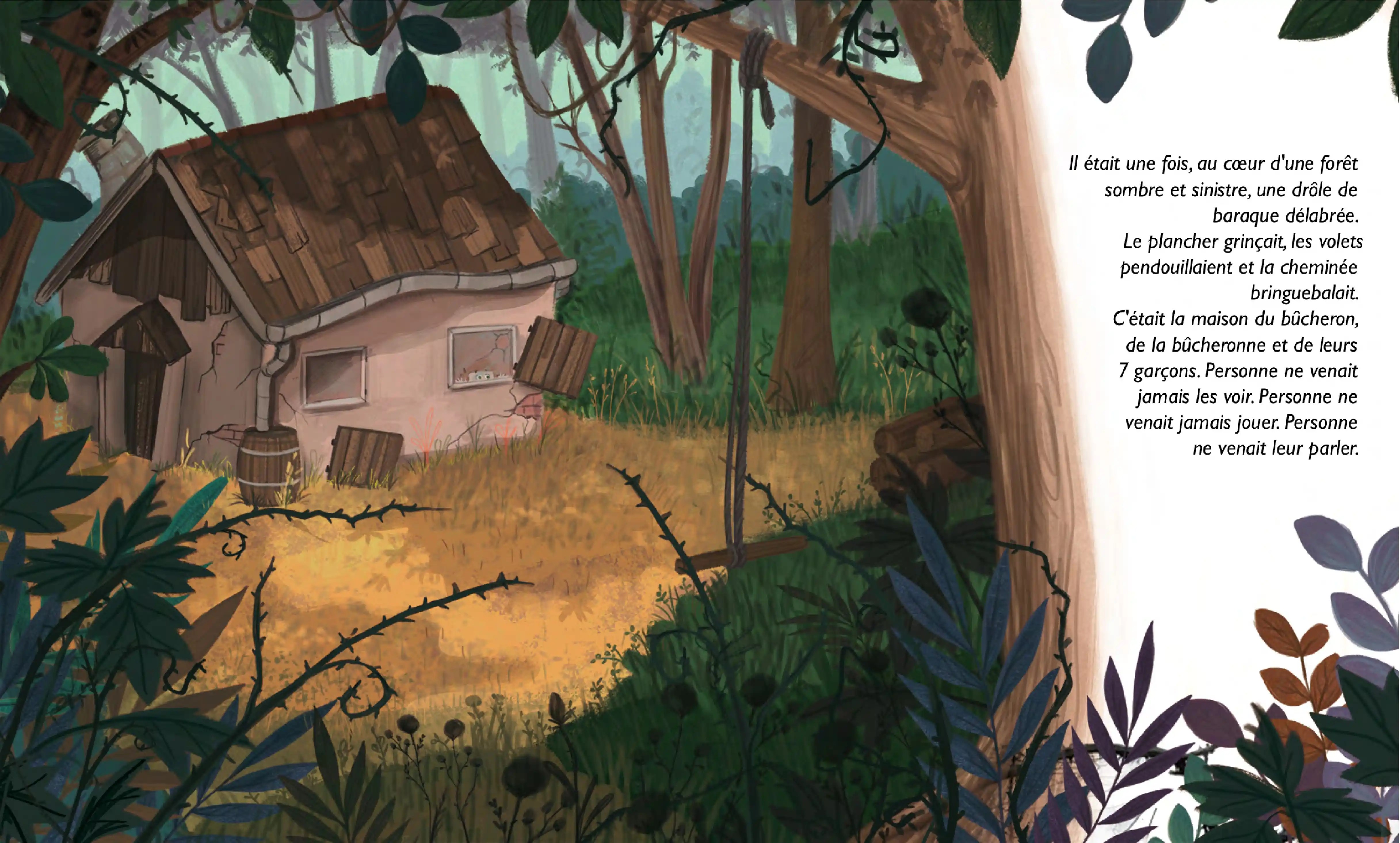 Il était une fois un petit garçon qui s’appelait Marcellin. Mais, parce qu’il n’était pas plus grand qu’un pouce, on l’avait surnommé Poucet. Il arriva alors un terrible jour où ses parents n’eurent plus de quoi nourrir leurs 7 enfants… Ils les abandonnèrent dans le terrifiant Bois Défendu où rôdent le Grand et Méchant Loup et l’Ogre-qui-mange-les-enfants.