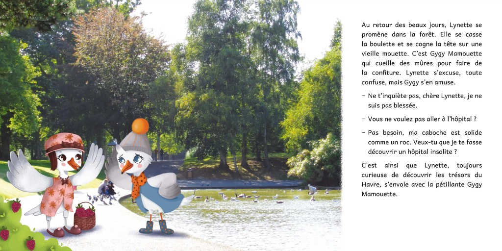 Lynette la mouette a préparé sa valise pour un grand voyage. Direction : le soleil ! Mais une terrible tempête déboussole sa boussole et lui fait perdre le nord ! La voilà toute étourdie dans une main de géant au pied d’un volcan ! Mais Lynette est rassurée par une bien jolie salamandre, Cassandre, qui lui explique qu’elle a atterri au Havre.
