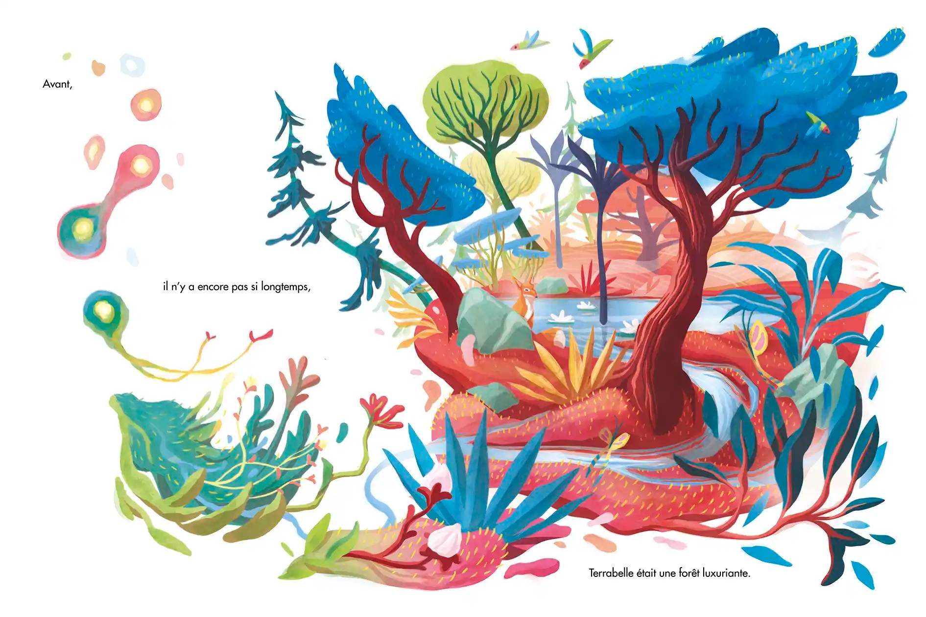 D’un côté, les Homs, un peuple à la recherche de plus d’espace pour vivre, s’étendre et développer les cultures nécessaires à ses besoins. De l’autre, Terrabelle, une forêt ancestrale, luxuriante, magnifiquement vivante – menacée par les besoins insatiables des Homs, qui pour se développer décident de la raser.